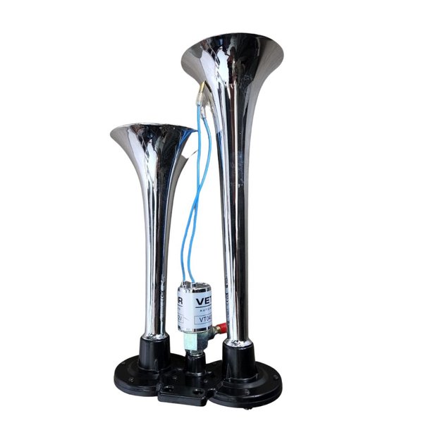Eleve a potência e o impacto da buzina do seu caminhão com esse par de buzinas cromadas. Ela possui duas cornetas fabricadas em metal resistente e acabamento em cromado, ideal para uso externo.