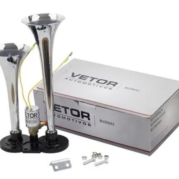 Com duvida sobre qual buzina daria certo em seu caminhão? Essa você não precisa ficar com dúvida!!! A compatibilidade dela é Universal, tensão de operação é 12V, modelo exclusivo para linha pesada. A frequência (L) 380-420Hz e (H) 500-540HZ. Fabricado em Plástico Resistente, com cromo de Alta Qualidade. Fácil Instalação, não acompanha botão. O comprimento das cornetas são de 29cm e 23,7 cm, a dimensão do mini compressor é de 3,5 x 6 cm.