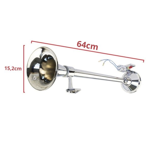 BUZINA MARITIMA ELETROPNEUMATICA 64CM CROMADA 24V COM KIT INTALAÇÃO