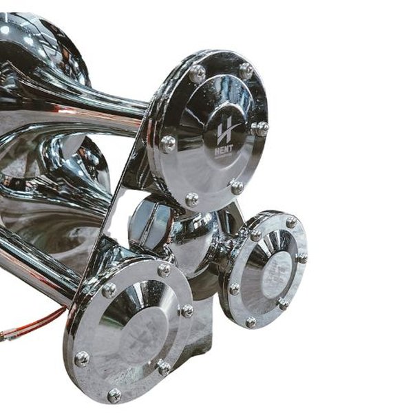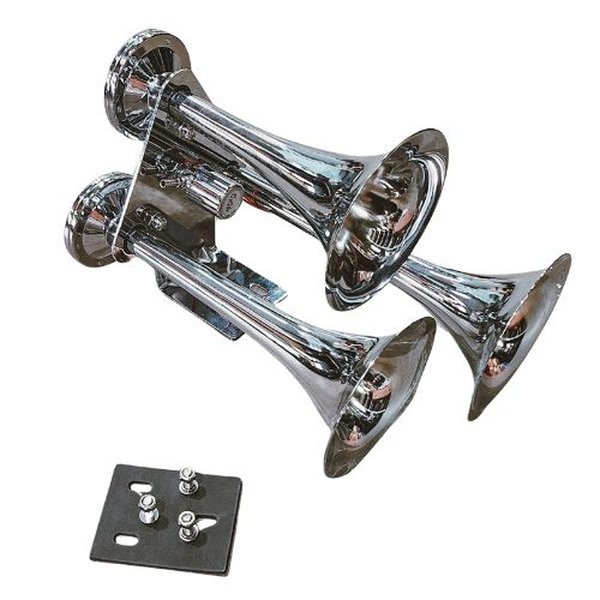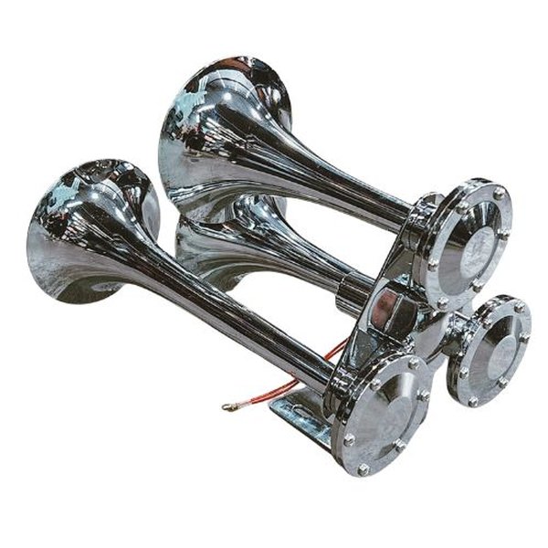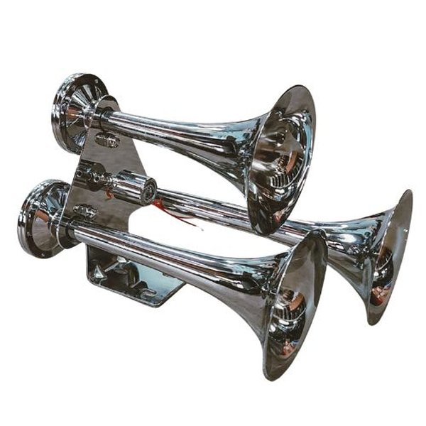 Buzina Marítima Trem Navio Caminhão Cromada Bivolt 12v/24v 3 cornetas com solenóide.