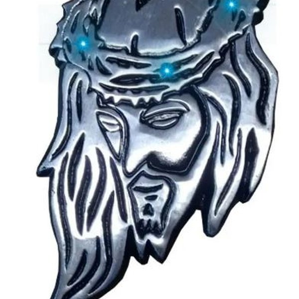 LUMINOSO JESUS DE ALUMINÍO COM LED AZUL